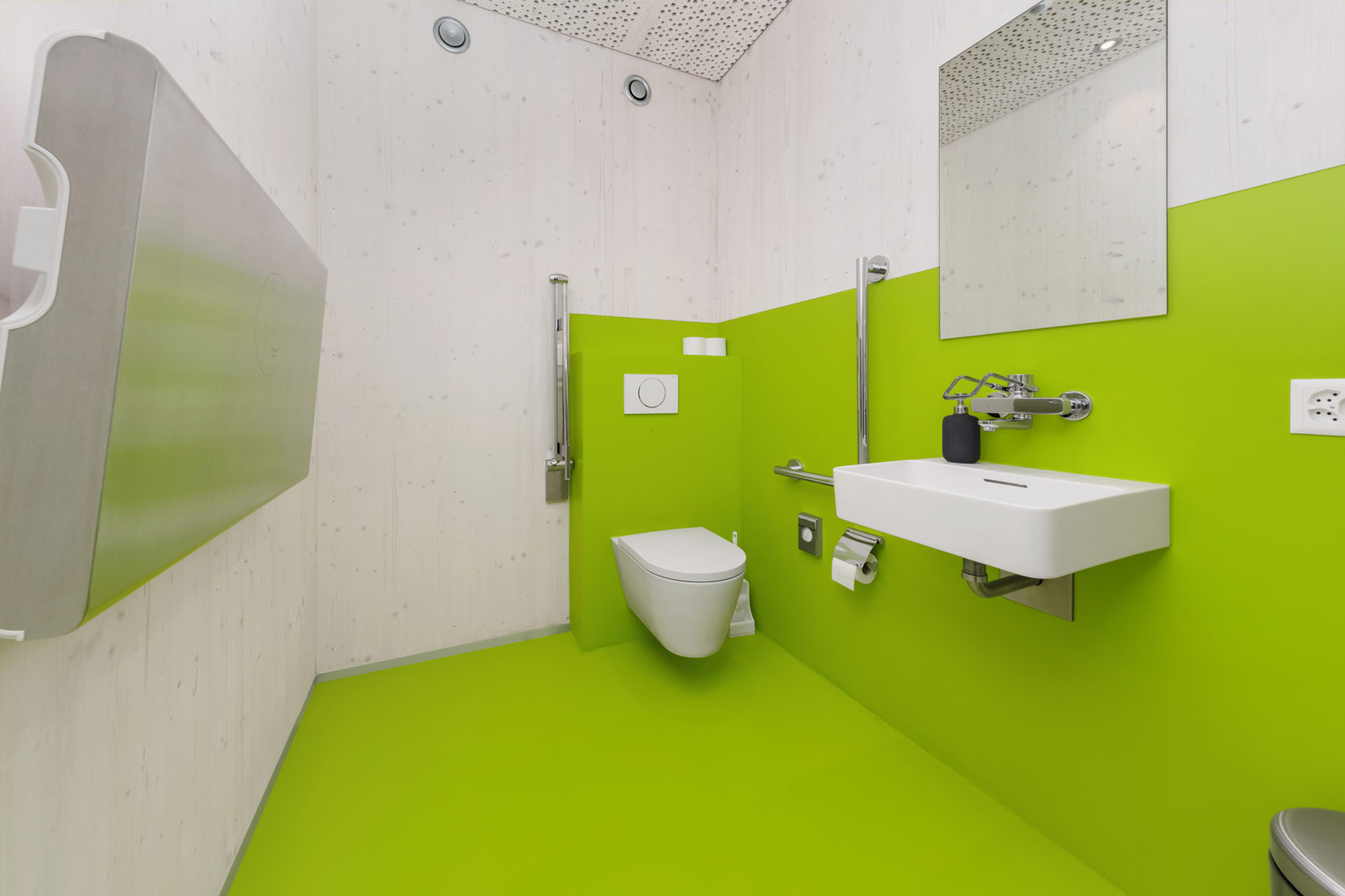 Hier am Beispiel einer Toiletten-Wandbeschichtung.